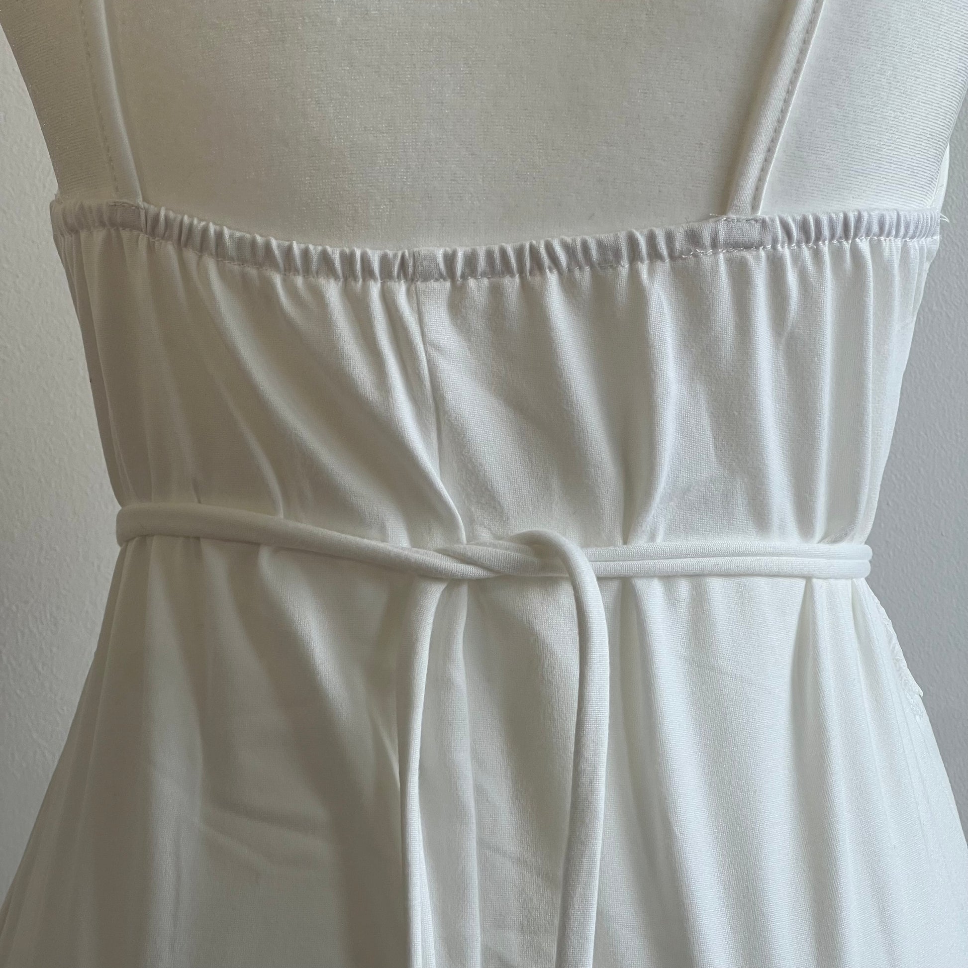 Princess White Lace Top — a delicate lace cami with soft straps and an asymmetric hemline. Style with a satin skirt or low-rise denim for a dreamy, princess-inspired look. Model mannequin is wearing size S (US 2–4).